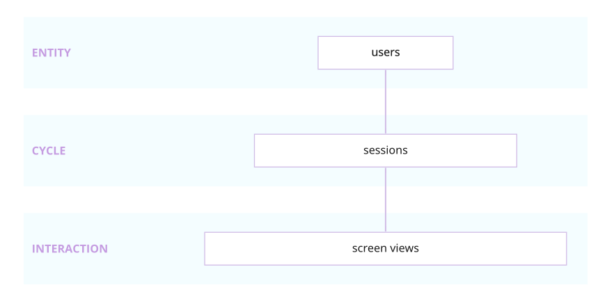Unlike the web model the level of aggregation is not linear, as shown in the diagram below. This allows the sessions module to consume events other than just screen views, such as app installs or crashes.