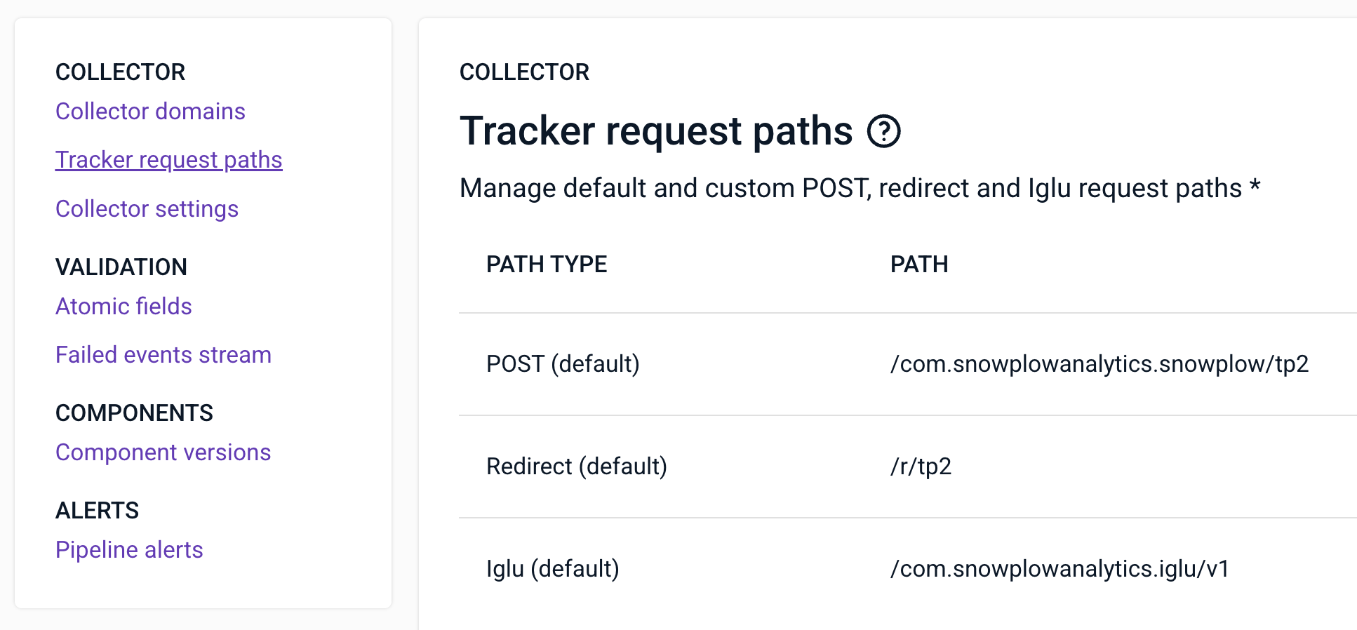 webhookcontains a non-optional list of paths for tracking events sent via aGETorPOSTrequest containing an Iglu-compatible event payload.